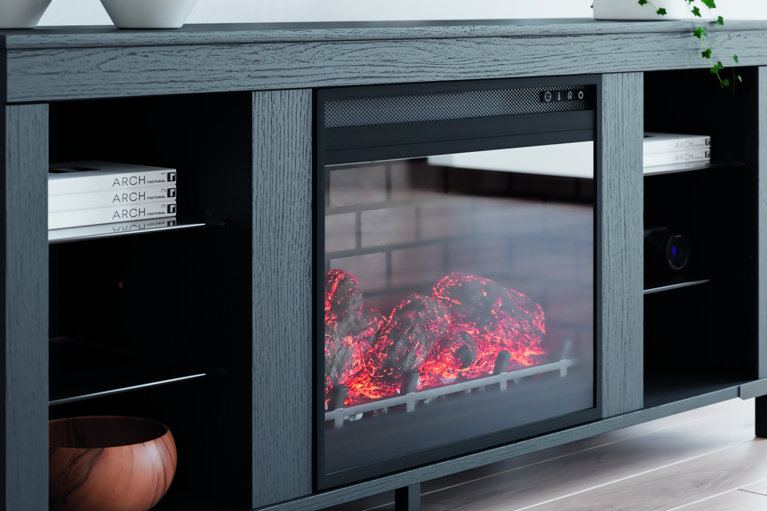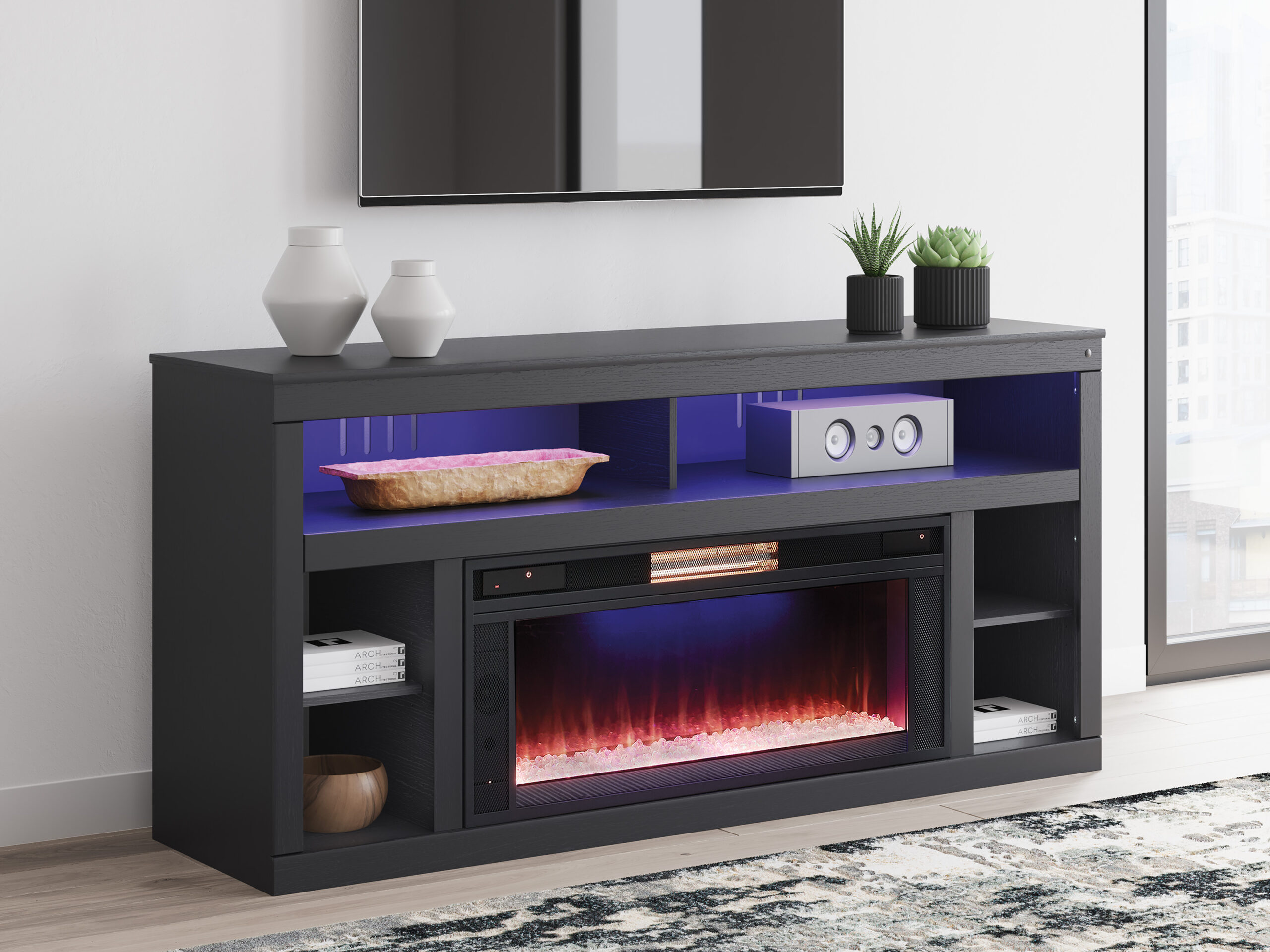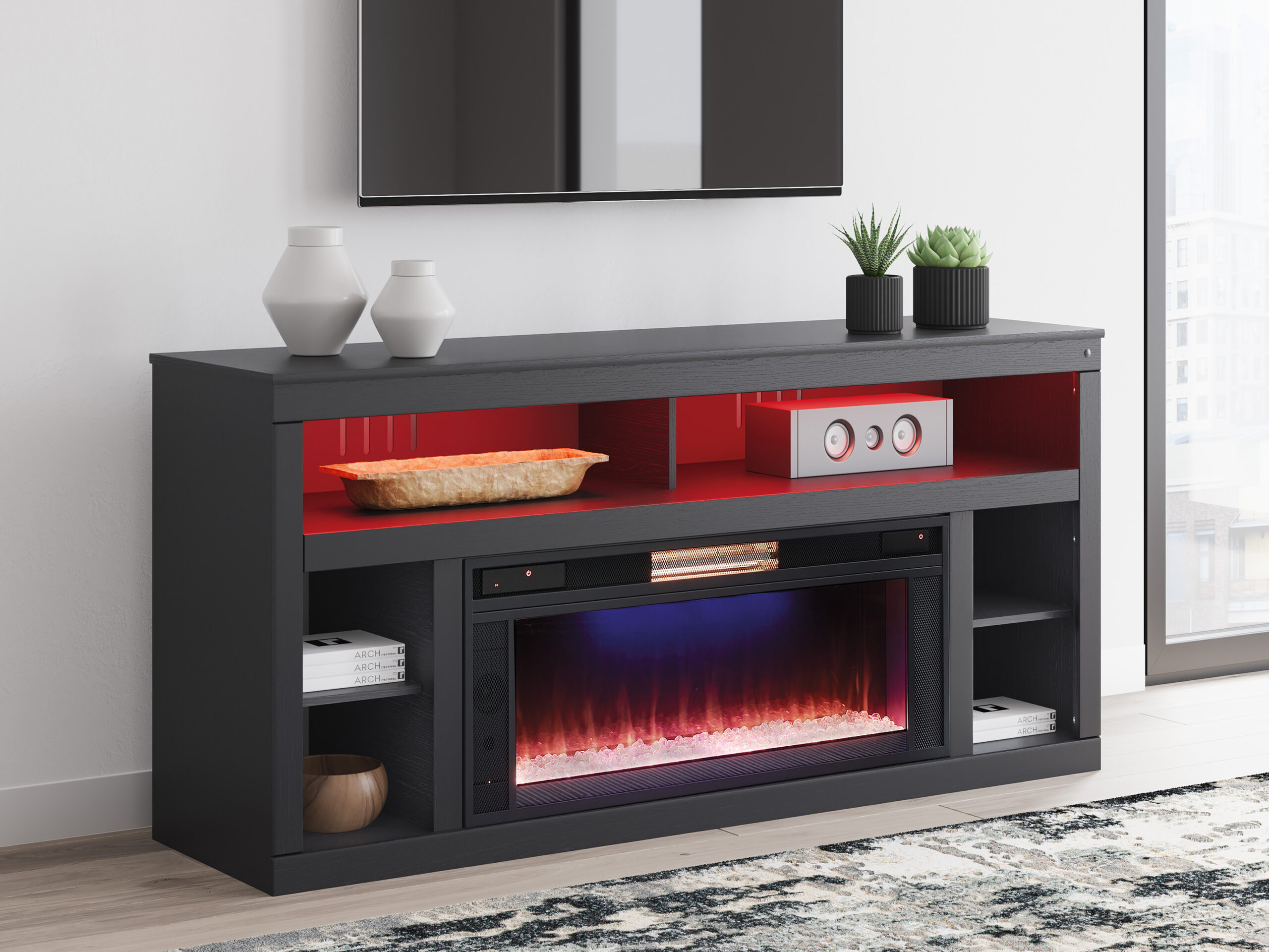 Level up your gaming experience and make movie nights to remember. This TV stand with electric fireplace extends your entertainment beyond the screen. Its built-in fireplace brings the heat, synchronizing with LED backlighting on the shelves. And you can customize the vibe with three trendy color options: blue, white and red. Modern function. Captivating, cool style. With this TV stand, revamp your home’s recreational hub like never before.